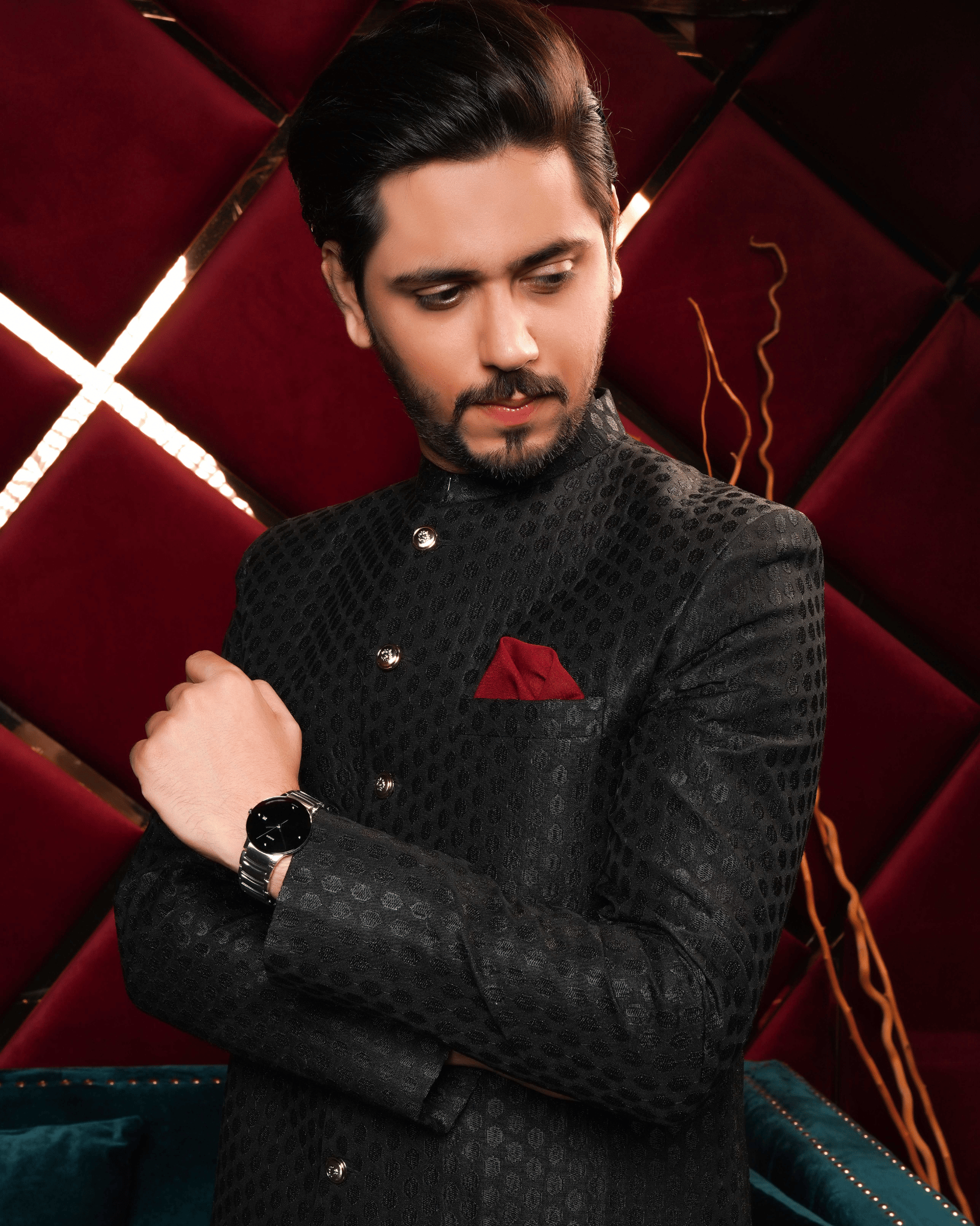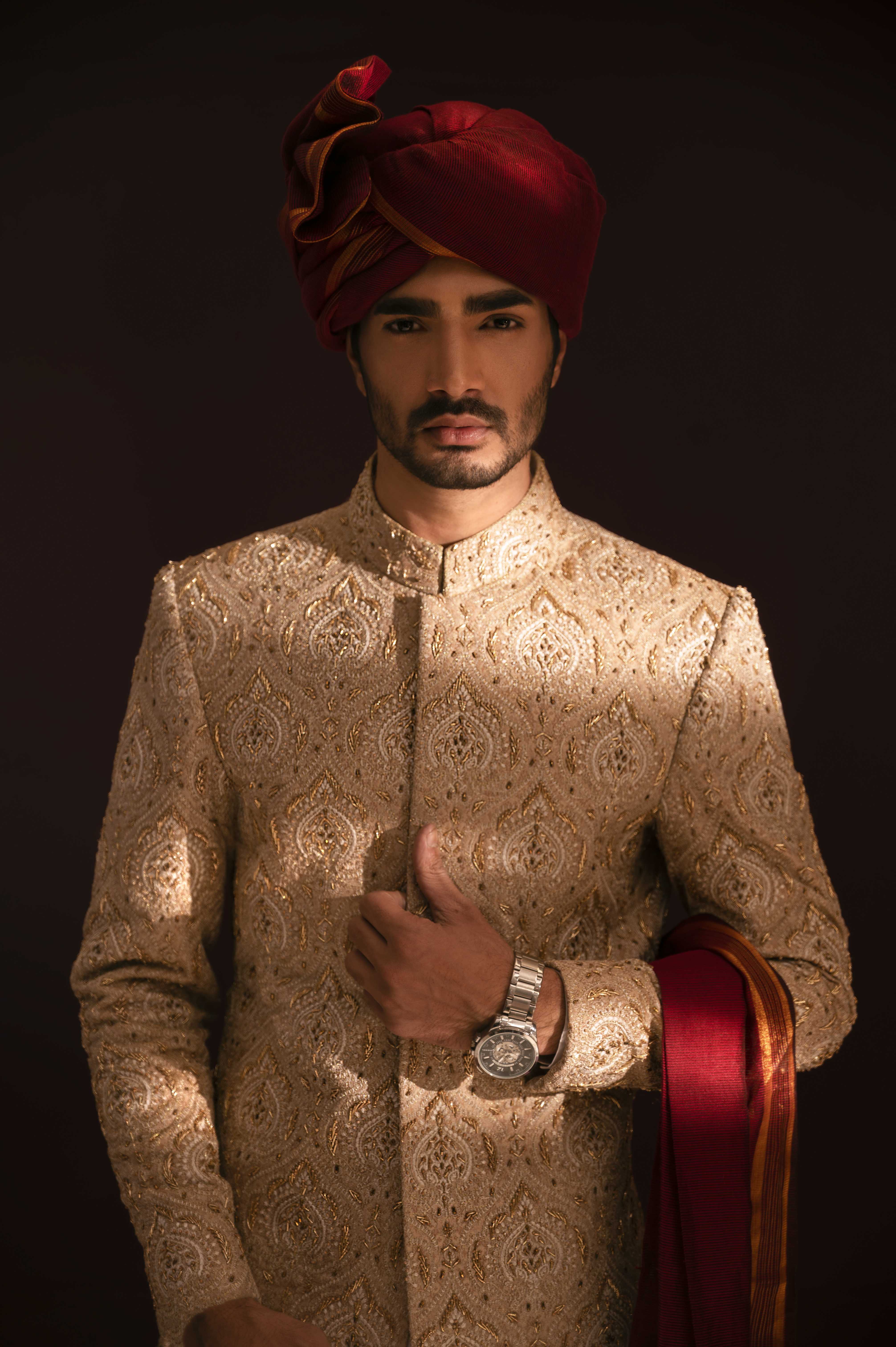 Discover timeless elegance with our exclusive sherwani collection – a blend of tradition and sophistication. Elevate your style with our curated sherwani designs, tailored for grooms who seek perfection. From classic black sherwanis to contemporary groom sherwanis, we redefine luxury. Explore the epitome of groom's fashion at unbeatable prices. Embrace the charm of Pakistani sherwanis, including the renowned Amir Adnan sherwani collection. Your journey to impeccable style starts here. Shop now for the perfect sherwani that complements your special day.